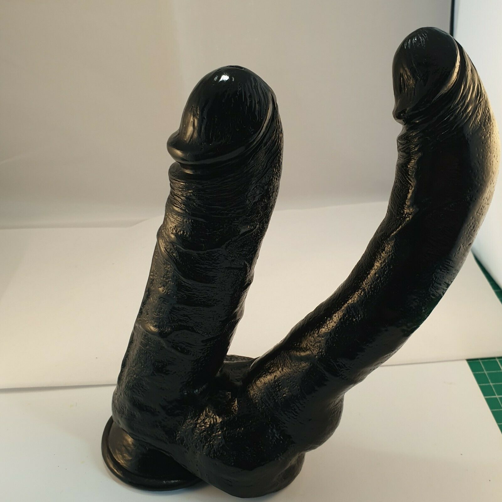 Black Twin Dildo with Suction